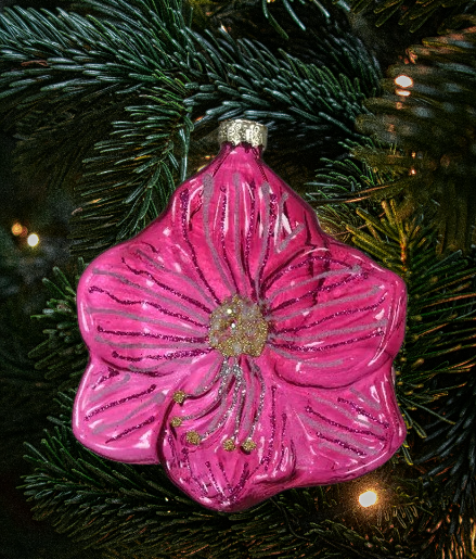 Deze mooie roze bloem is gemaakt van glas en gedecoreerd met glitters. Deze staat super mooi en kleurrijk in de kerstboom.10x6x11cm